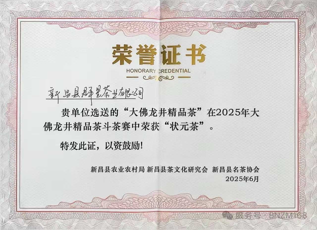2025年6月,公司选送的“大佛龙井精品茶”在2025年大佛龙井精品茶斗茶赛中荣获“状元茶”
